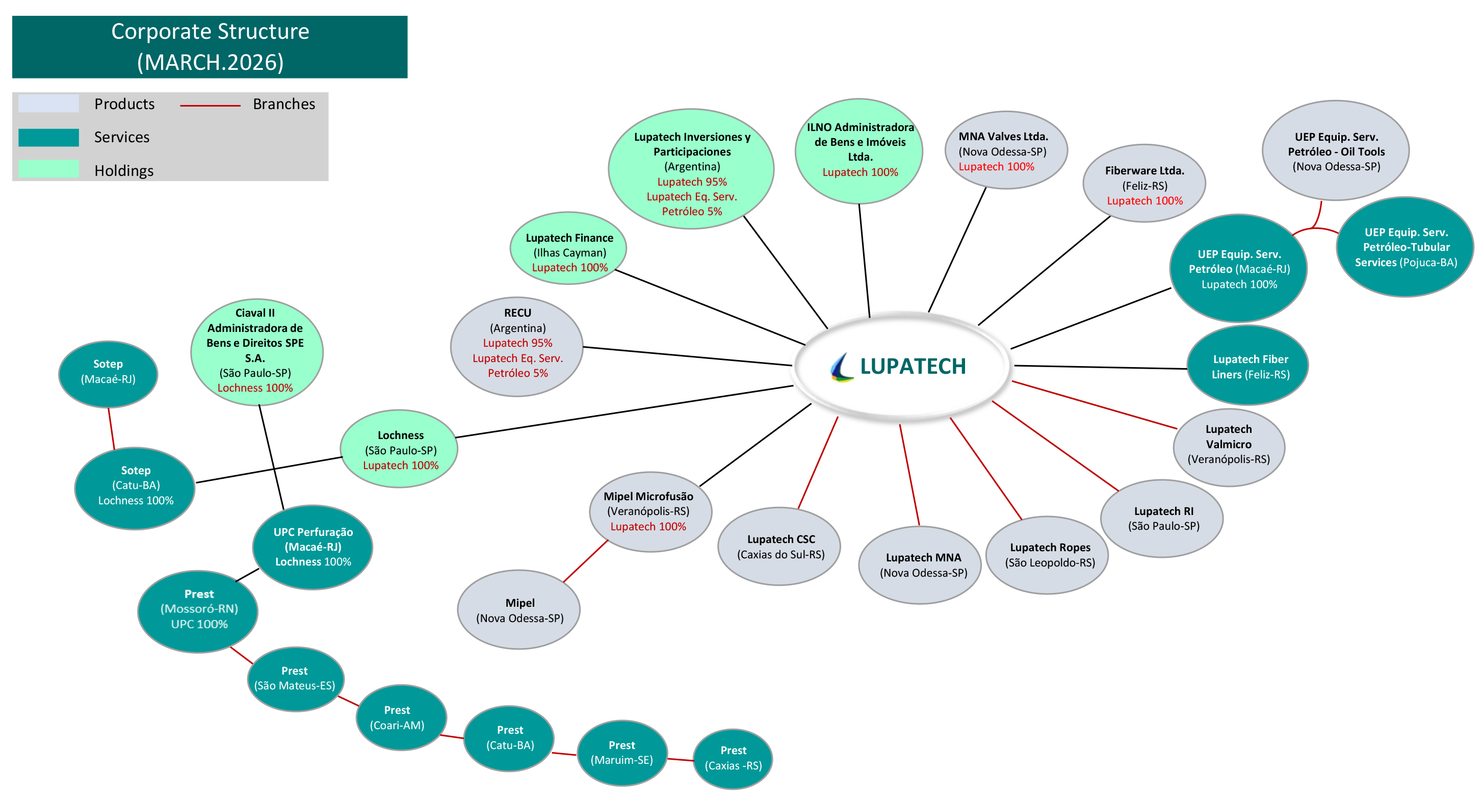 Apresentamos a seguir o organograma societário da Lupatech: